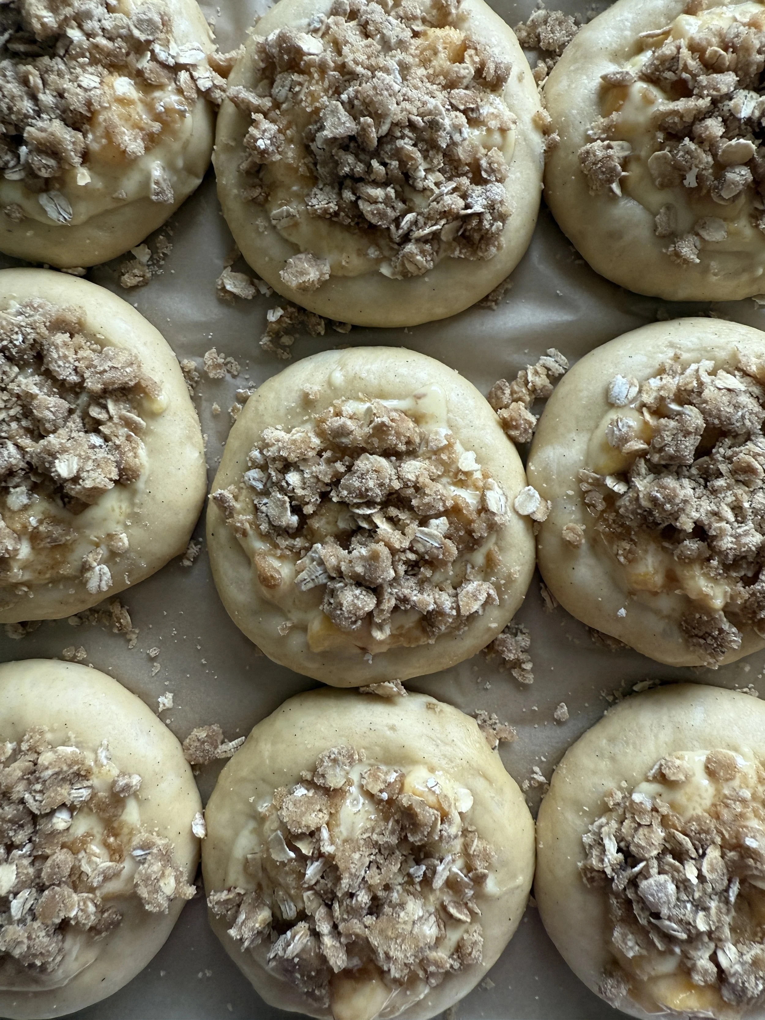 Peach Brioche Buns with Crumble