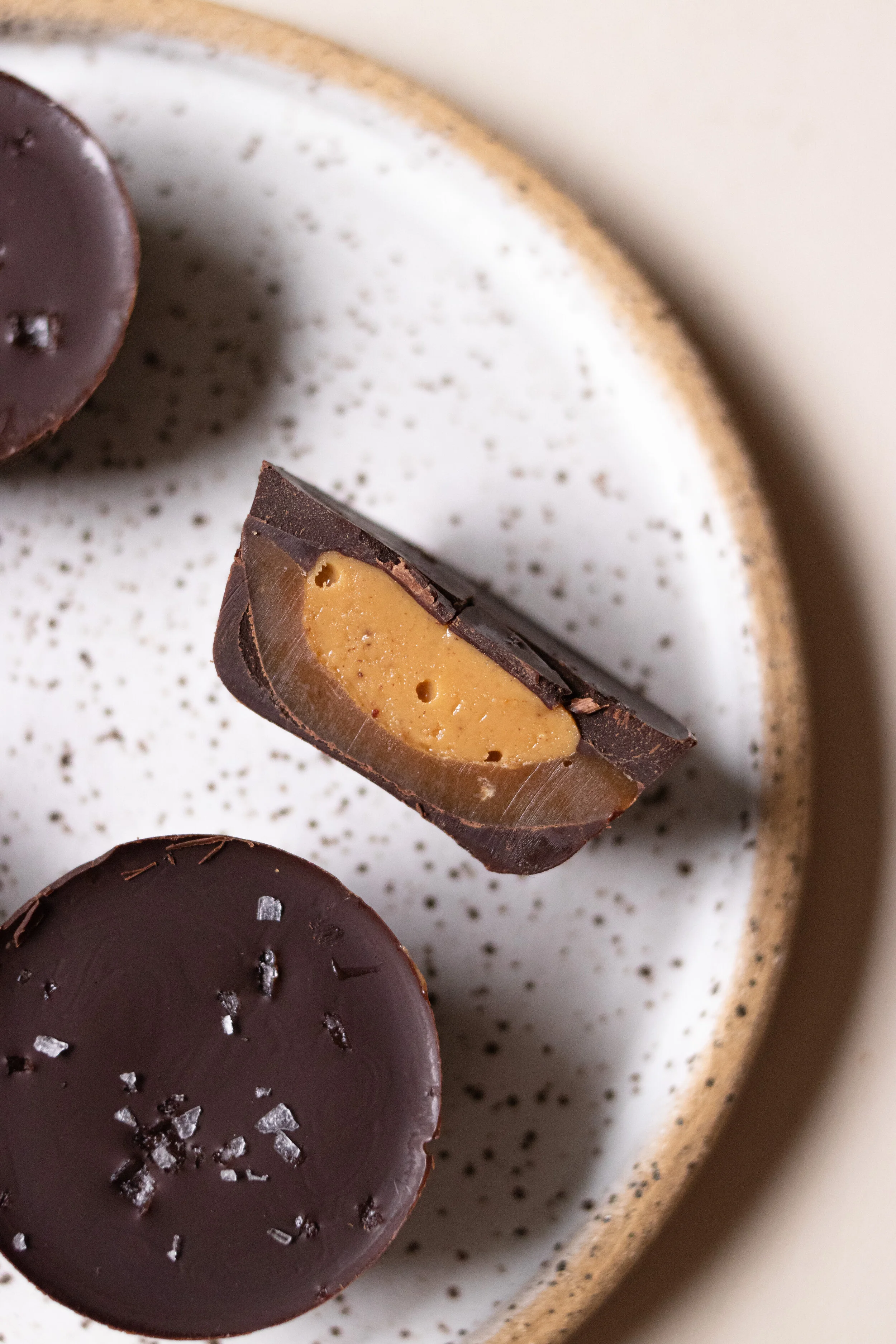I made a batch of these and put some of my favorite melted Hu Chocolate in a mini muffin tin, the caramel on top, a bit of nut butter, and some more chocolate, and it won’t be the last time I do that. And you can get 15% off your order of Hu products using code ALANA15. And to be festive, I also made some with a mouse mould that I found in my possession (and ordered late at night off Amazon).
